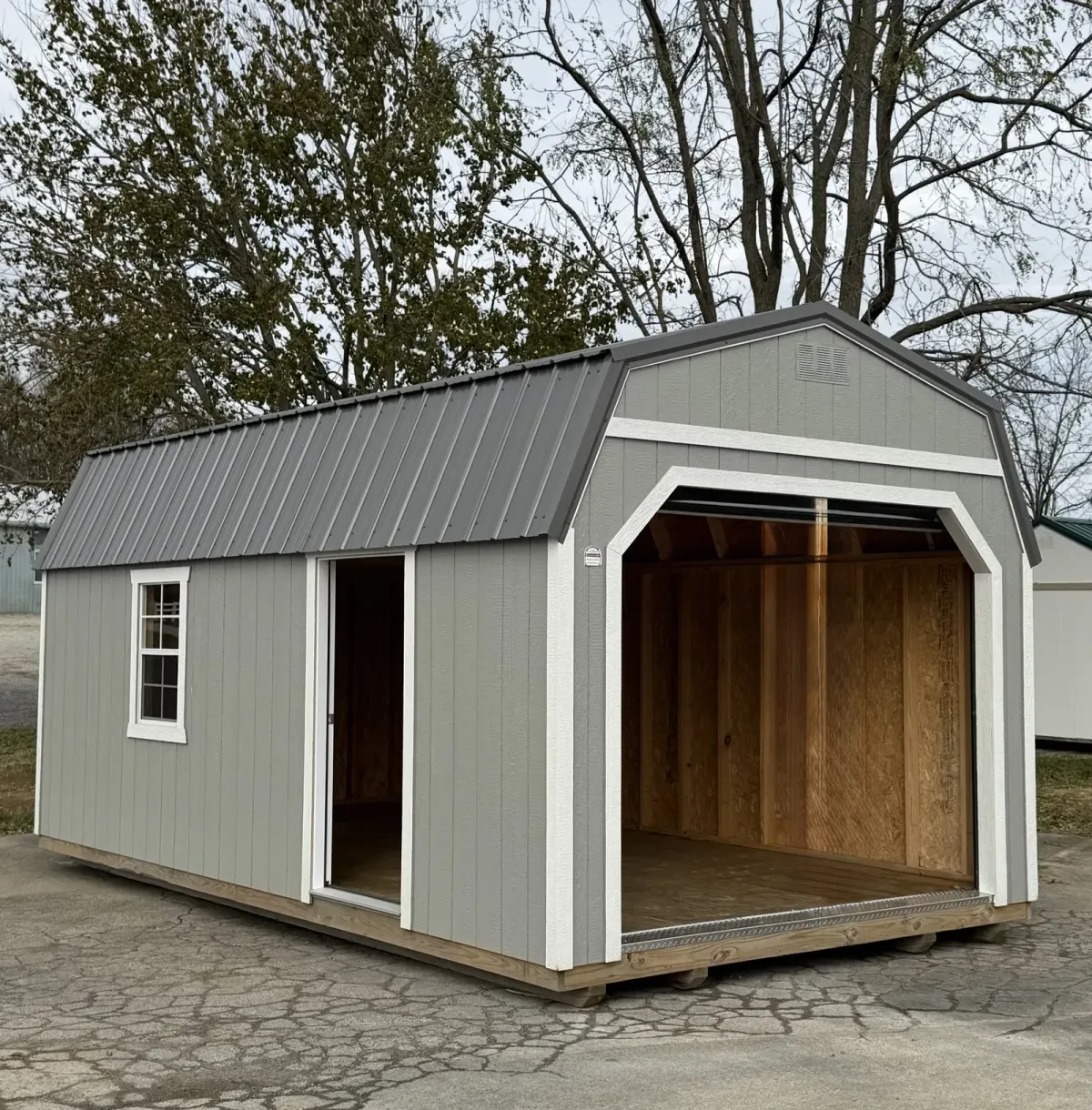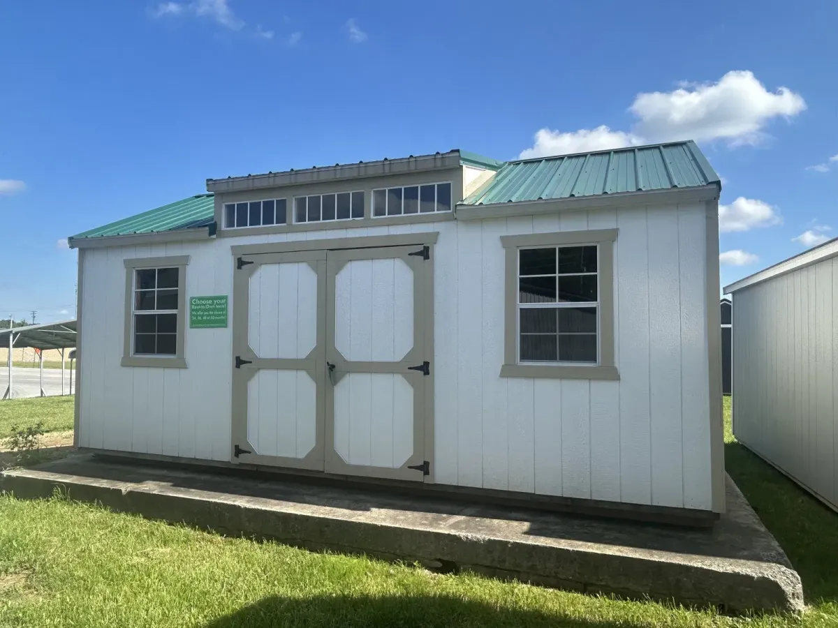 Find durable sheds, garages, barns, and portable buildings for sale in Kentucky and Southern Indiana, including Louisville, La Grange, Shelbyville, Georgetown, Jeffersonville, and New Albany. Our in-stock units are available for fast delivery, and we offer premium materials with affordable rent-to-own options. If you don’t see the exact building you want on our lot, our team can help you design a fully custom shed or garage built to your needs.